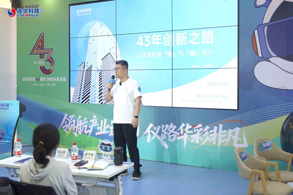 8 月 18 日,“领航产业进化,仪路华彩非凡”—— 连华科技 43 周年共创未来庆典盛大举行,在合作伙伴与企业同仁的共同见证下圆满落幕?;疃殖?,连华科技高级技术工程师邱绍焕详细介绍了连华科技 43 年来的发展历程与辉煌成就,展现企业在水质检测领域的深厚积淀与不凡实力。