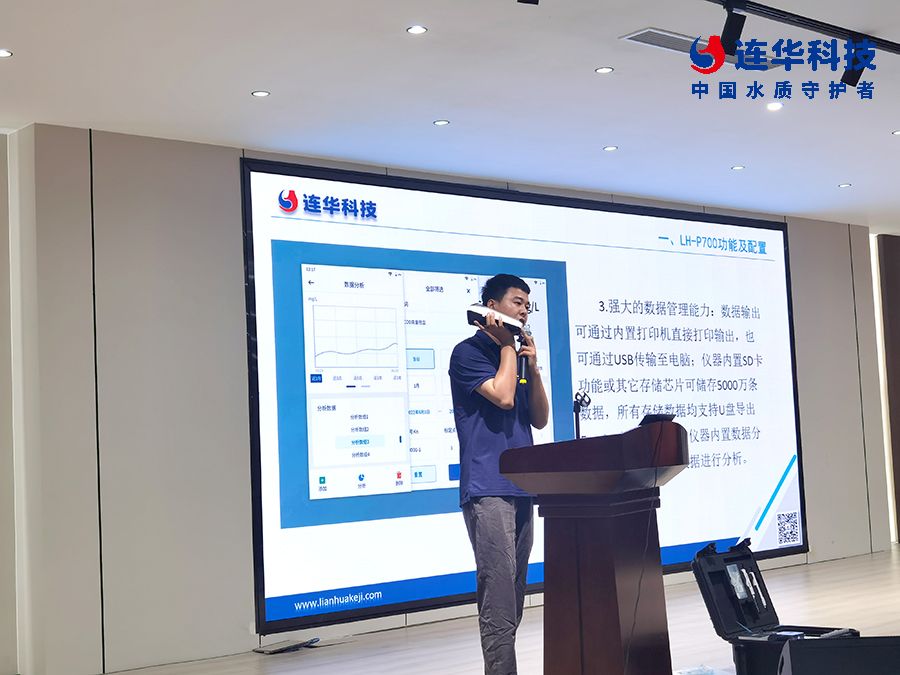 培训过程中,连华科技作为业内知名的水质检测仪器及耗材生产厂家,对清澜系列便携式水质测定仪LH-P700进行了详细的介绍和培训。上午的理论培训环节,连华科技技术人员对水质测定仪的原理、功能、常规污染指标实验操作方法及注意事项进行了全面系统的讲解,让参训人员对LH-P700这款水质测定仪有了更加深入的了解。