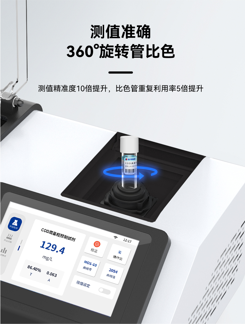 而说到比色,LH-C500更是独具匠心。它支持360°旋转管比色模式,不仅提高了测值的稳定性,还能让比色管得到更充分的利用,降低了实验配件的成本支出。同时,内置的7吋1024*600分辨率IPS全视角触控屏,让用户在各种环境下都能清晰显示实验结果,操作也更加直观简单。