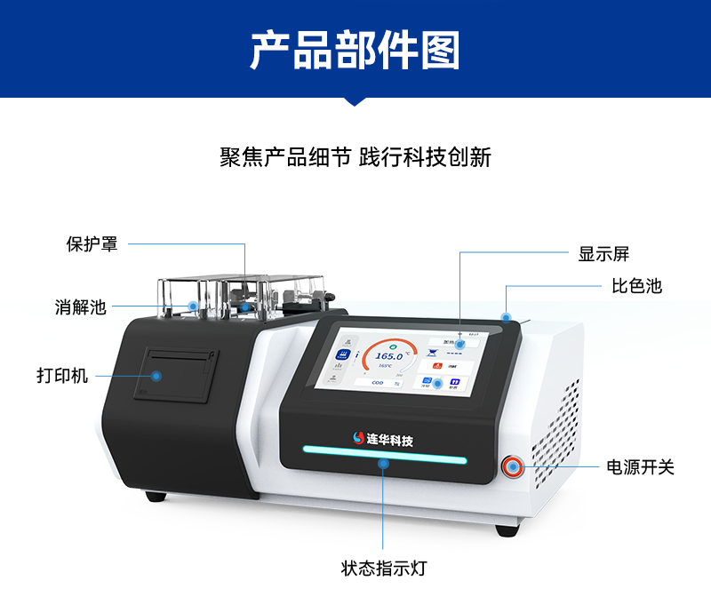 除了以上这些亮点,LH-C500的检测项目还完全符合国家行业标准,如COD-《HJ/T399-2007》、氨氮-《HJ535-2009》、总磷-《GB11893-89》等,让用户在检测过程中更加放心、安心。同时,产品配套齐全,包括各种液体耗材、密封反应管、冷却架、管比色架、比色皿座、移液枪、定量器、一机打印纸等,让用户在使用过程中更加省心、便捷。