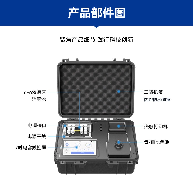 光源的持久耐用也是LH-C600的一大亮点。内置8个可见光波长LED光源,寿命长、更稳定且故障率更低,大幅降低了使用和维护成本。同时,户外检测便携性也是该仪器的一大优势。采用主机箱+配件箱的形式,耗材、配件完备,户外检测方便快捷。大容量锂电池更是确保了仪器在户外无电源条件下连续工作8小时以上的能力,让水质检测不再受地点和时间限制。