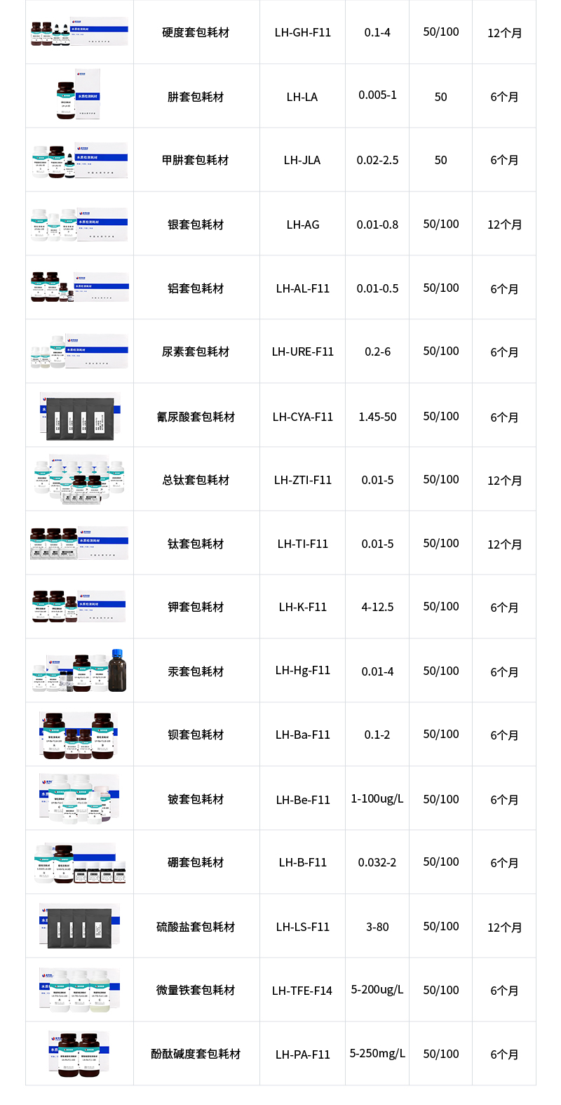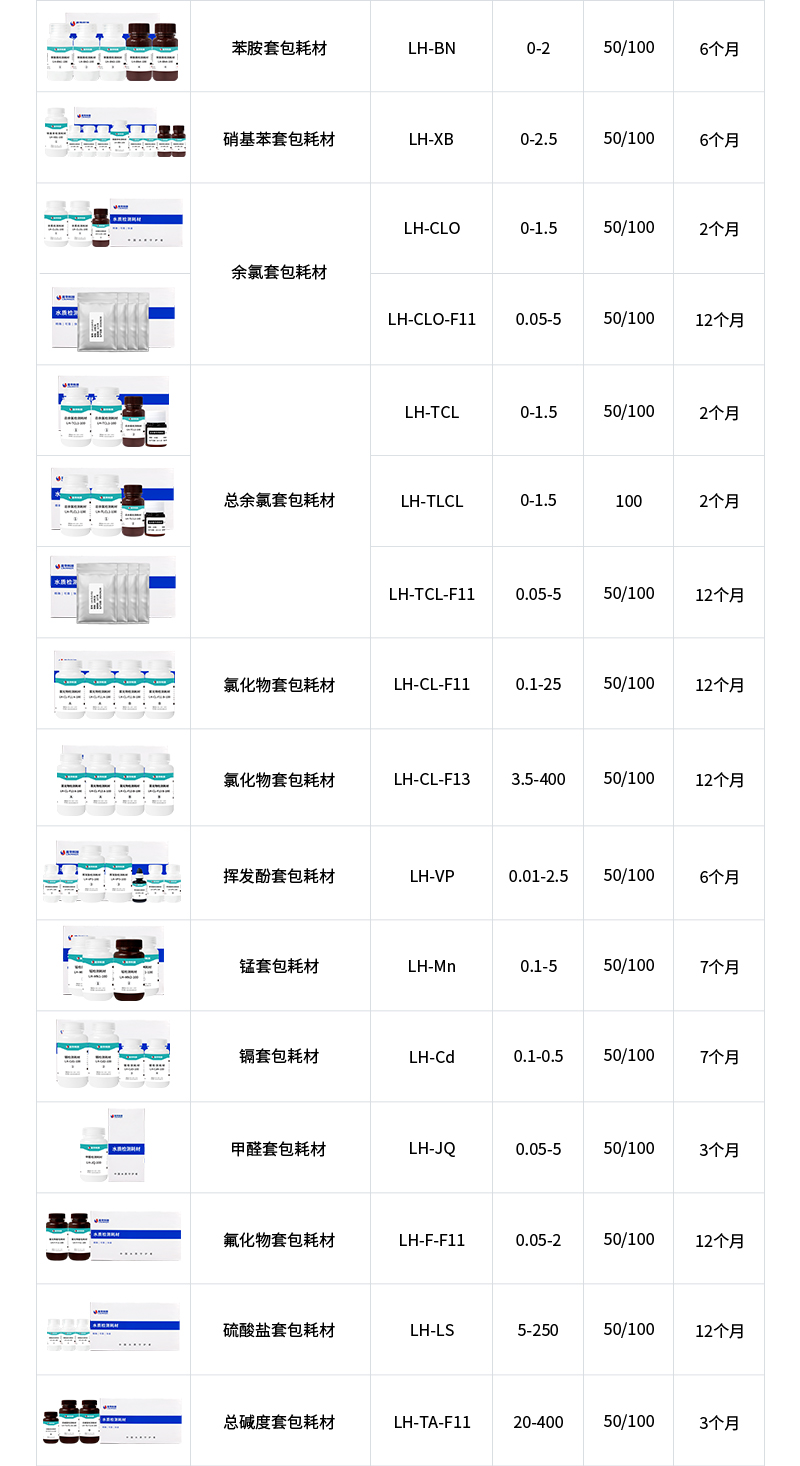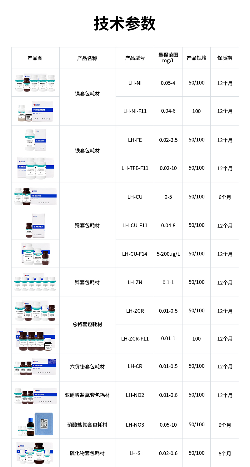 水质污染物液体耗材技术参数: