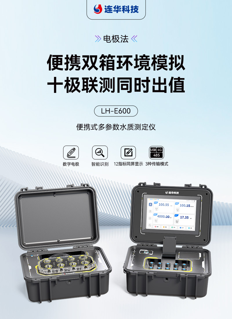 4、流通池内置长寿命自吸泵模拟水流,搭配8电极支架实现多参数同步检测,提升现场测量效率与精度;