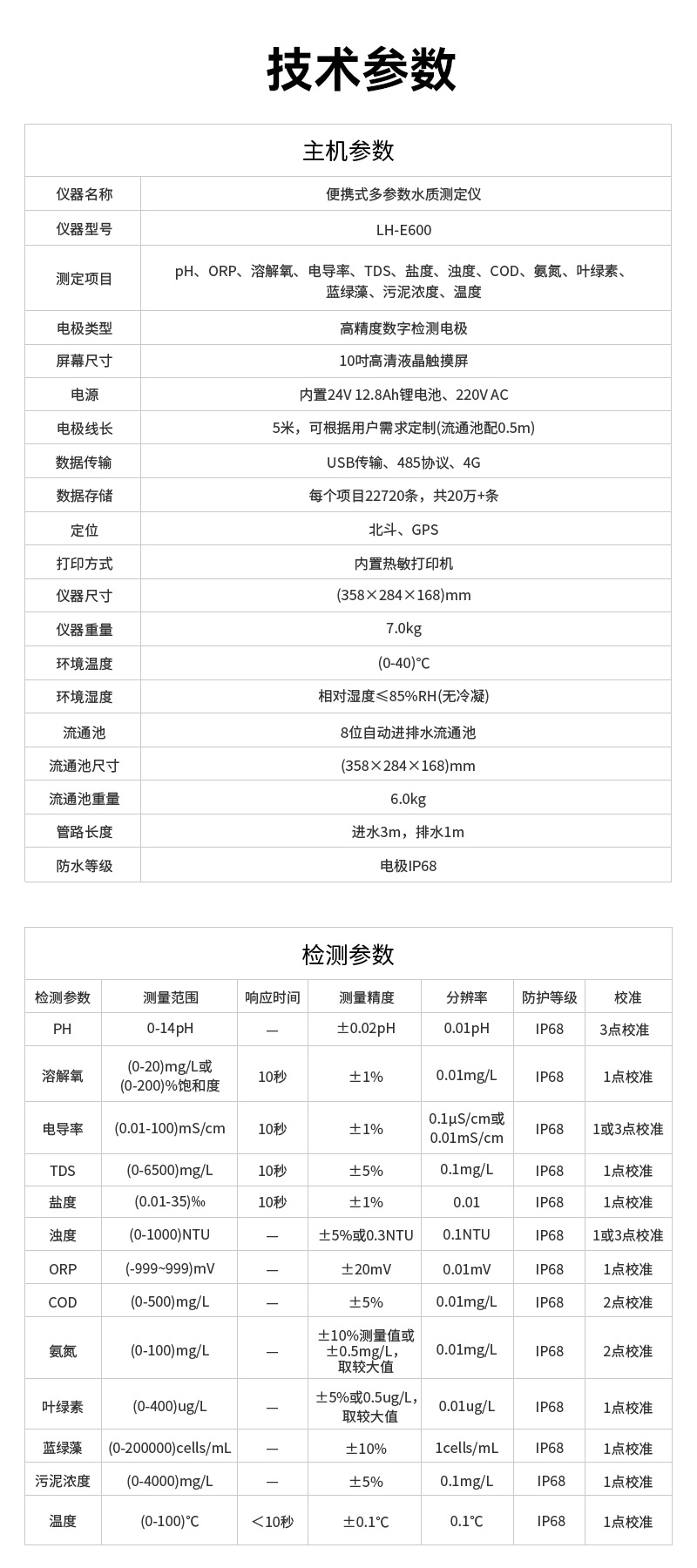 5.测定项目:PH、溶解氧、电导率、TDS、盐度、ORP、浊度、COD、氨氮、叶绿素、蓝绿藻、
