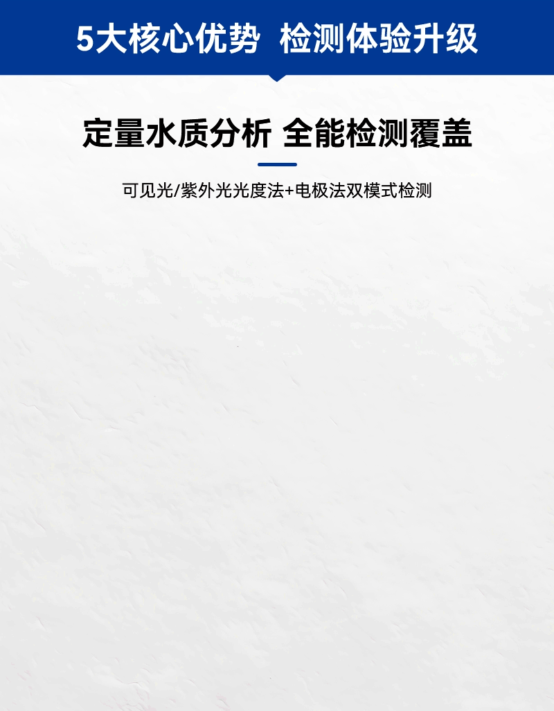 4、190nm-1100nm全波段检测,支持光度测量、多参数测定仪、紫外总氮及电化学功能,支持1-3cm比色皿及φ16mm管比色,满足多样化水质检测需求;