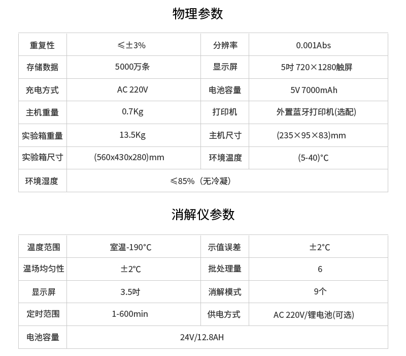 消解仪参数 |