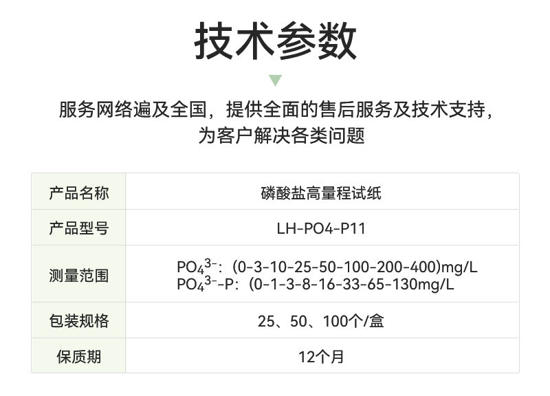 量 程:PO43-:0-3-10-25-50-100-200-400 PO43--P:0-1-3-8-16-33-65-130