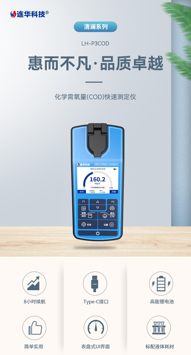清澜系列便携式COD测定仪LH-P3COD功能特点: